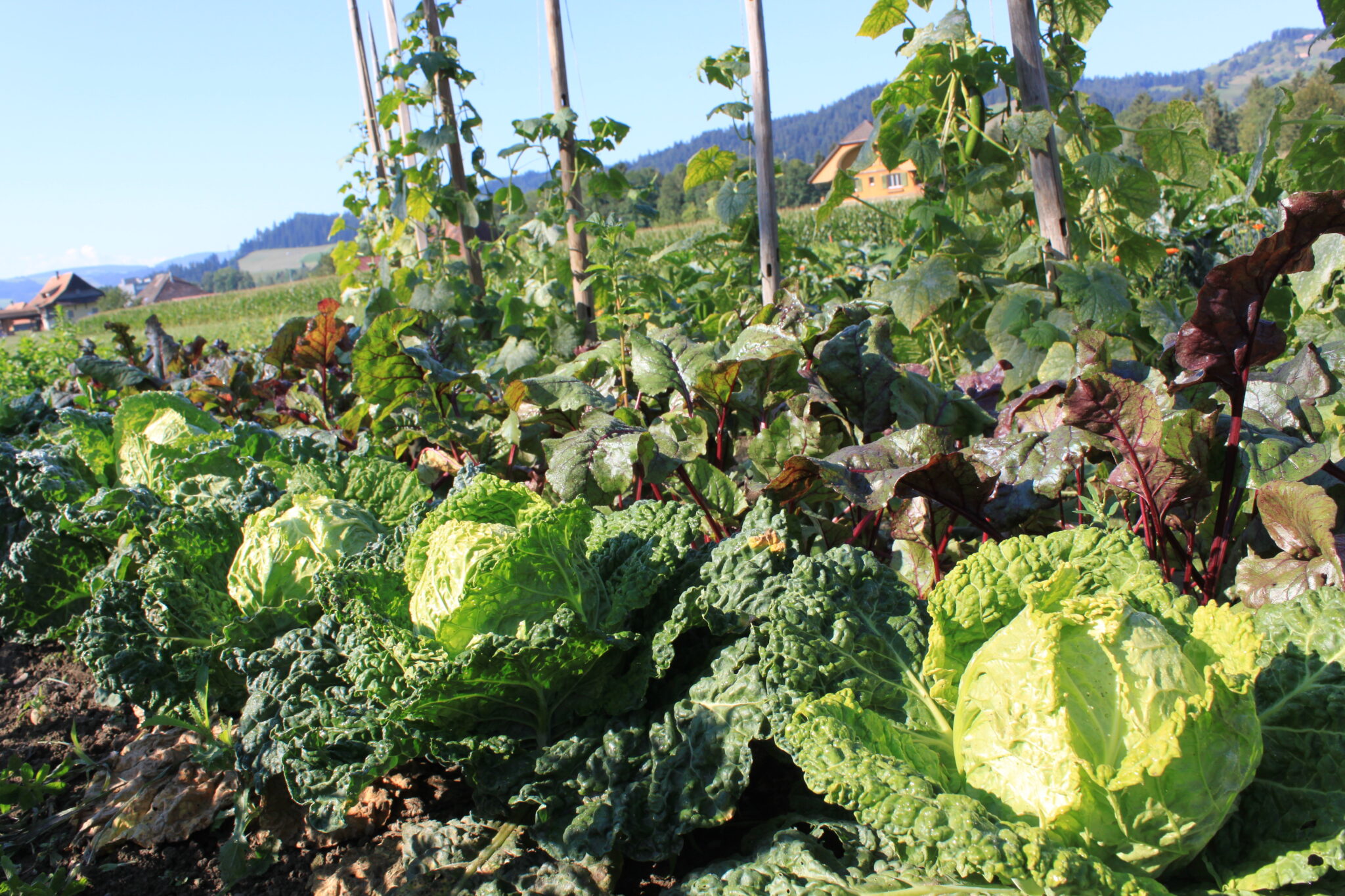 Das Projekt ist stetig gewachsen. Heute bauen wir in Zollbrück auf 15 Aren Gemüse, Kräuter und Früchte an, die wir frisch oder verarbeitet als Hofprodukte in unserem Selbstbedienungsladen anbieten.