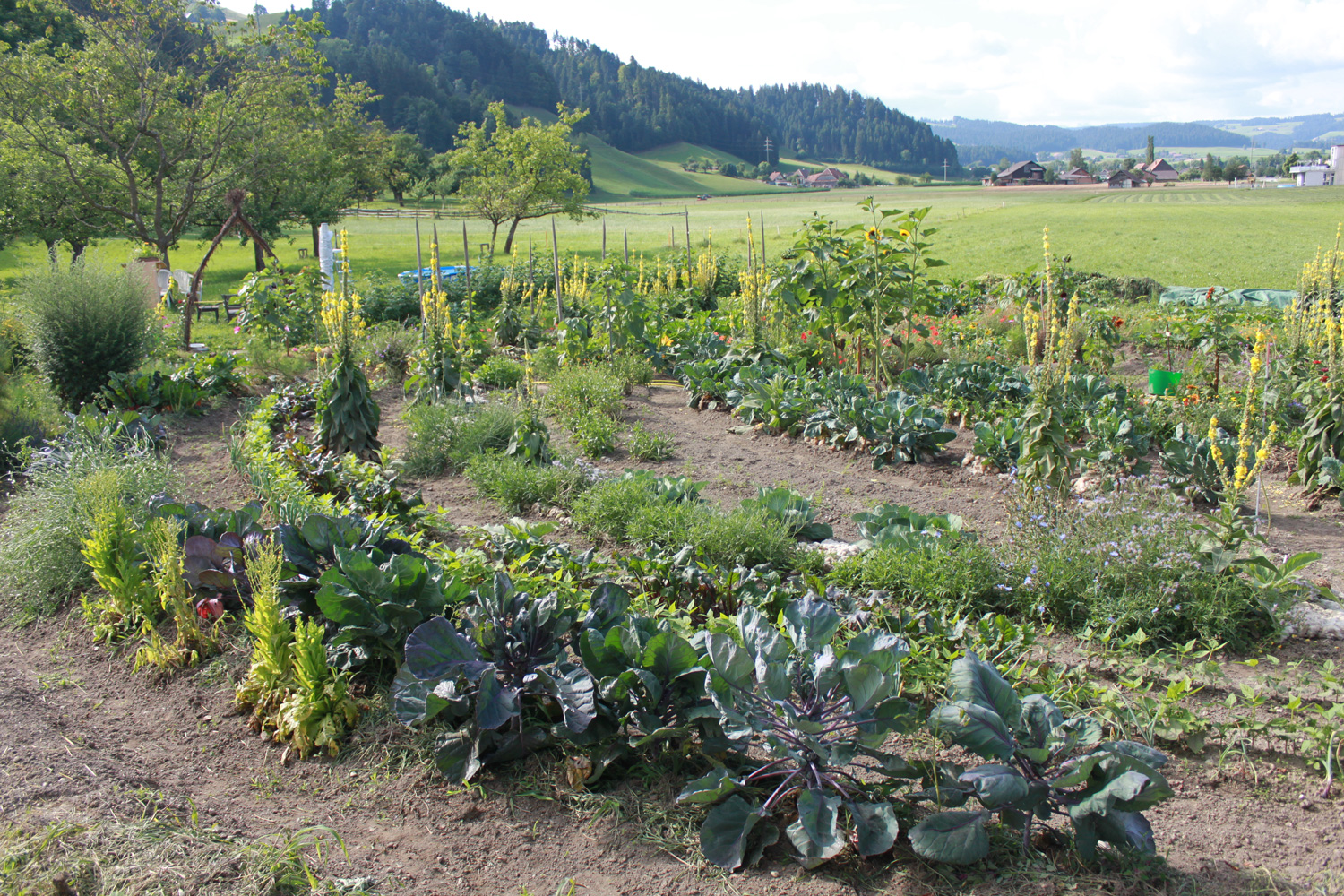 Seit 2015 bewirtschaften wir den Biogarten in Zollbrück. Wir säen selber aus, ziehen die Pflanzen hoch und ernten das Gemüse und die Kräuter für den Eigenbedarf oder veredeln die Produkte für die Direktvermarktung in unseren Hofläden und auf dem Markt.